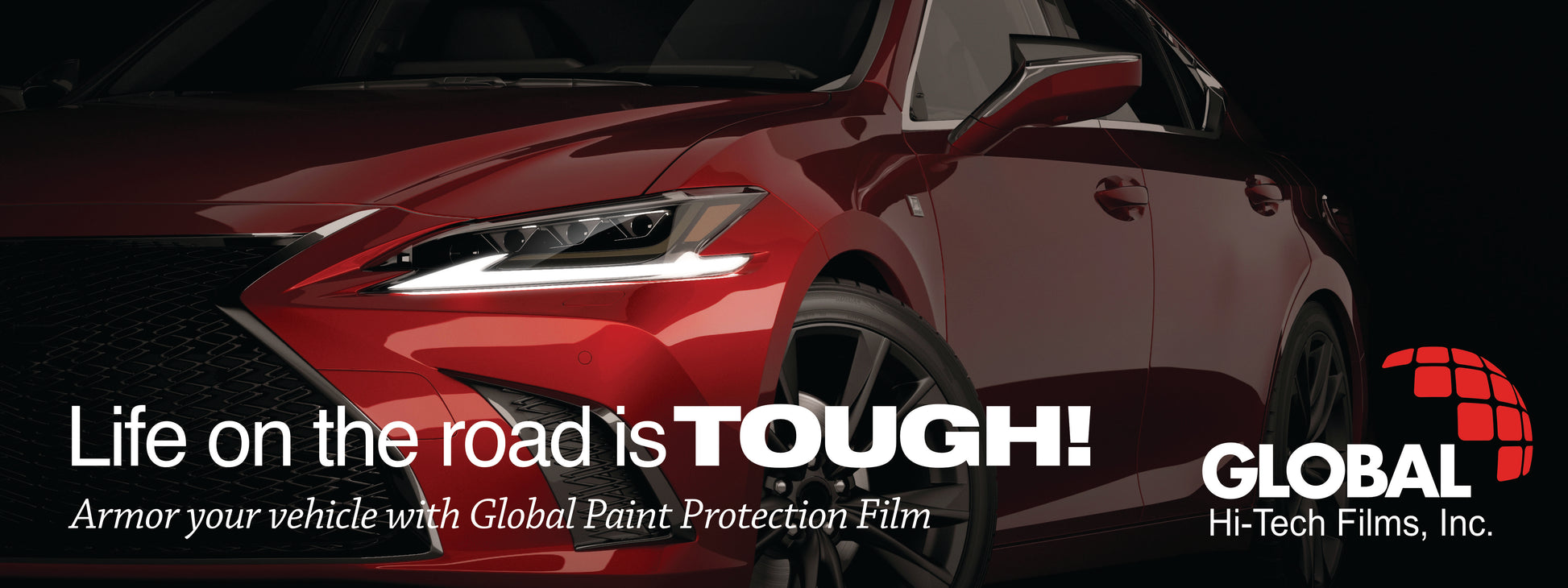 Proudly advertise that your shop installs Global Paint Protection Films with this 3' X 8' indoor banner.