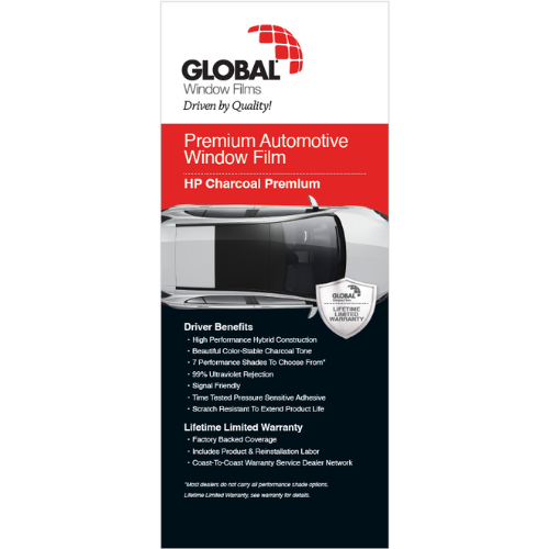 Give your customers something to read to explain the features and benefits of Global's HP Charcoal Premium automotive window films.